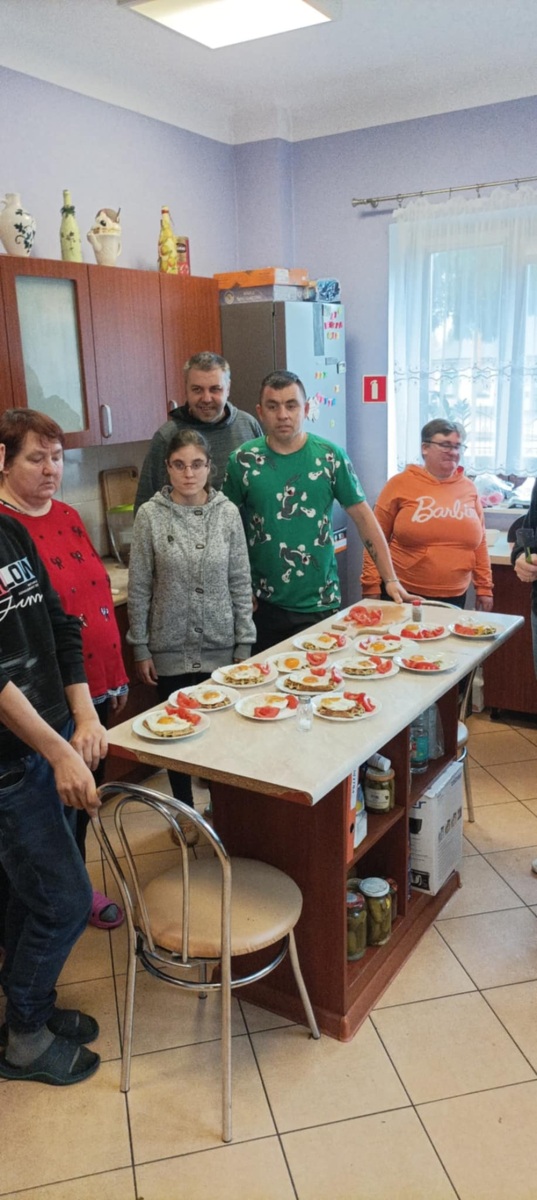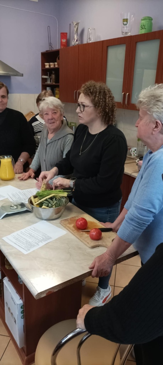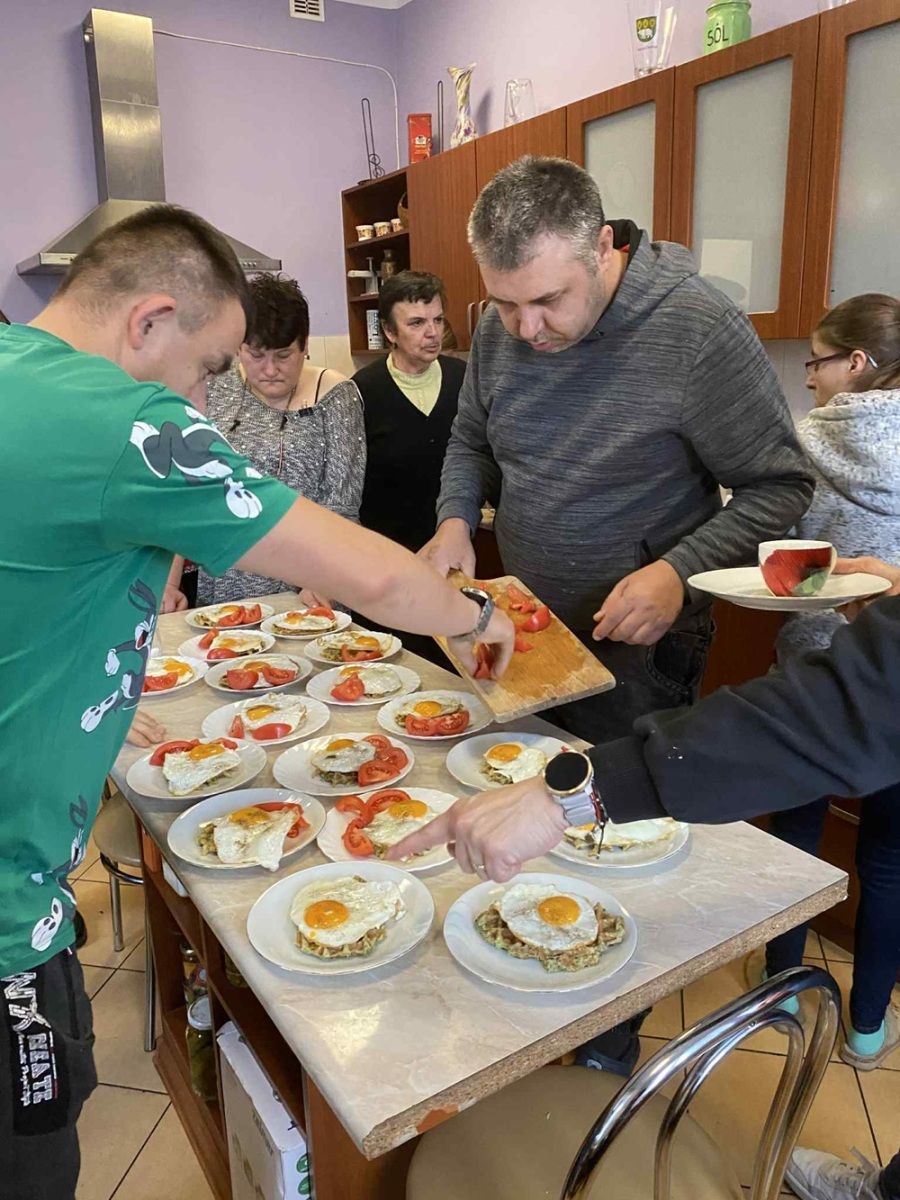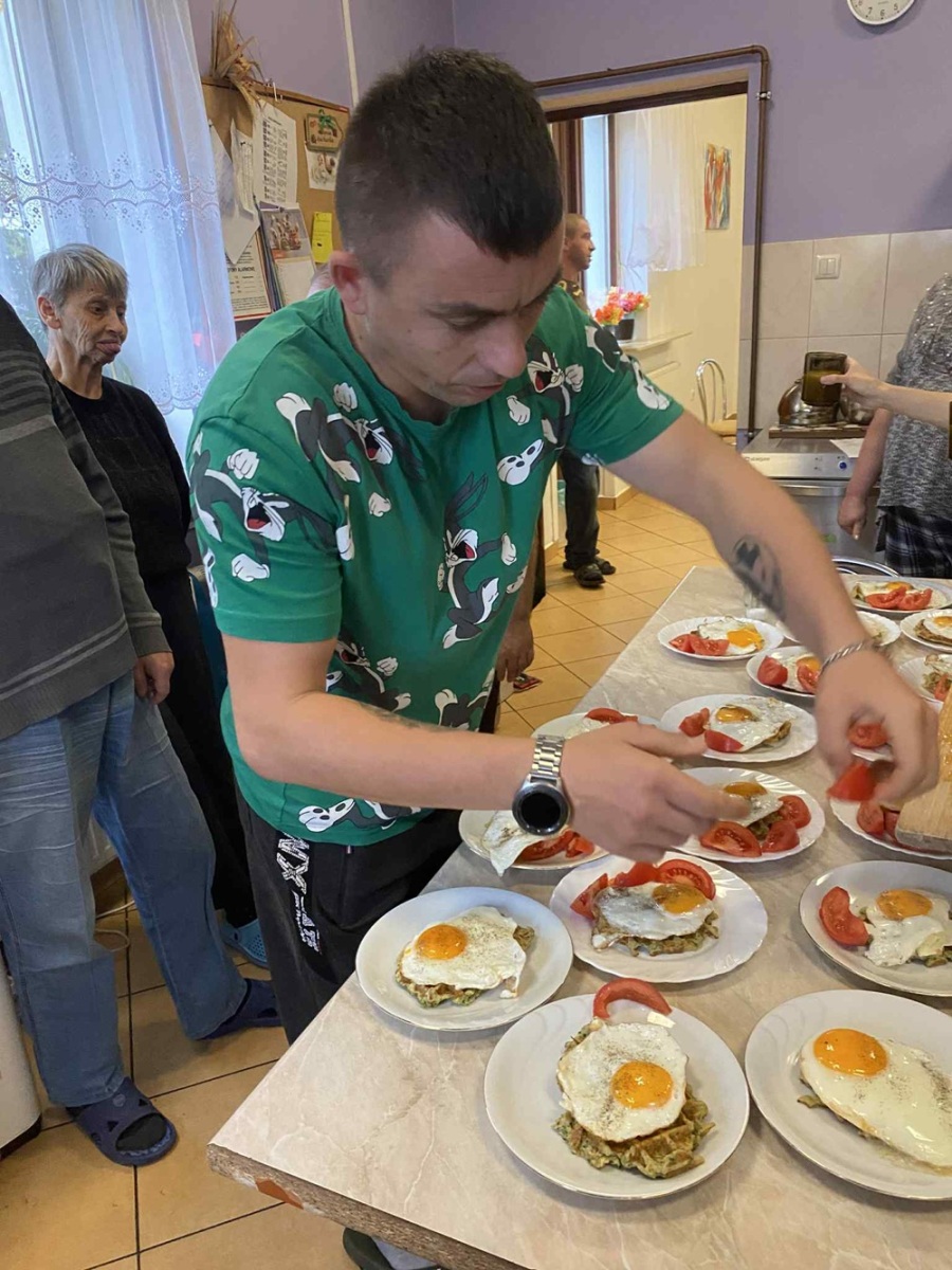 W dniu 17.11.2025 roku odbyły się kolejne już z cyklu edukacyjne warsztaty żywieniowe połączone z zajęciami kulinarnymi prowadzonymi przez Edukatora Zdrowia. Celem prowadzonych warsztatów jest podniesienie świadomości żywieniowej uczestników projektu, kształtowanie zdrowych nawyków oraz praktyczne zaprezentowanie sposobów przygotowania pełnowartościowych i łatwych posiłków. Podczas zajęć uczestnicy pod okiem Edukatora Zdrowia przygotowywali w grupach zdrowe potrawy takie jak: Gofry z cukinii
