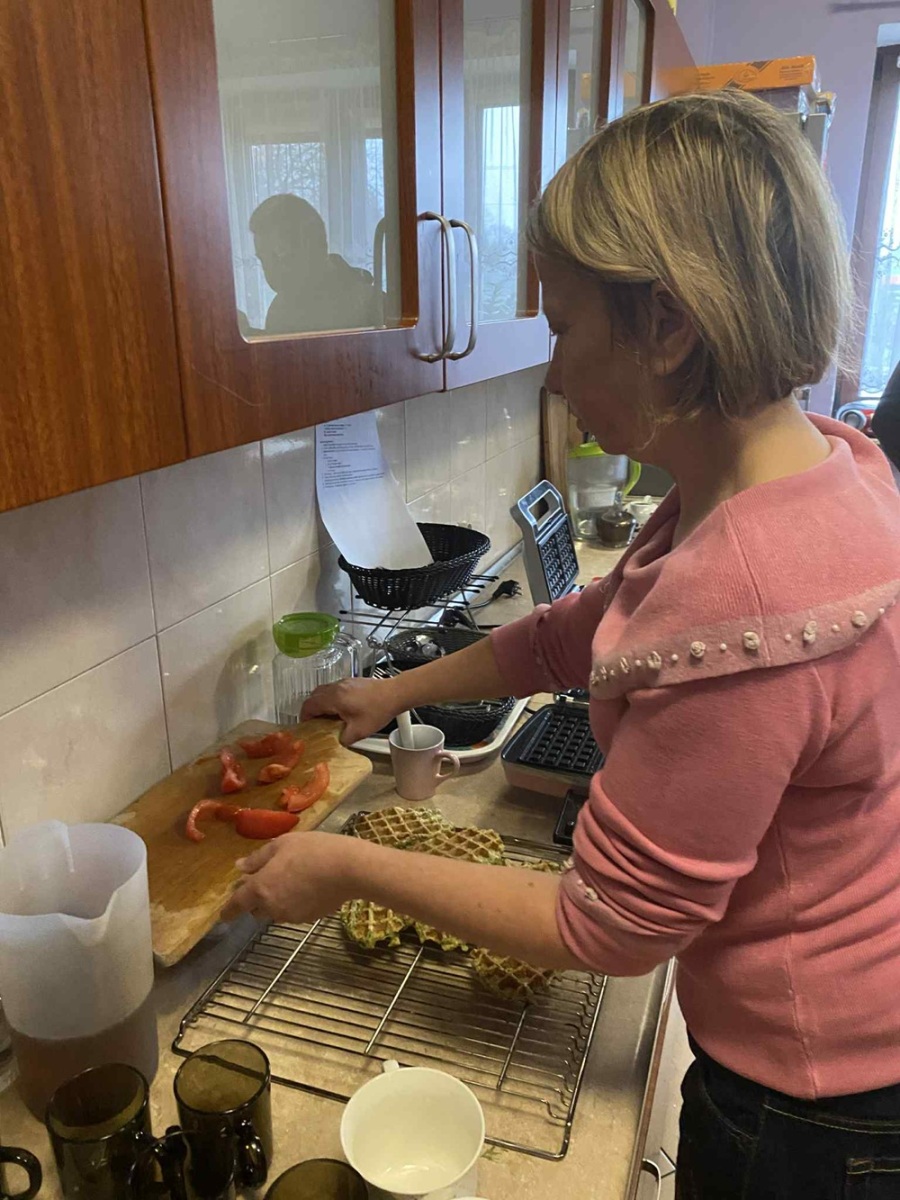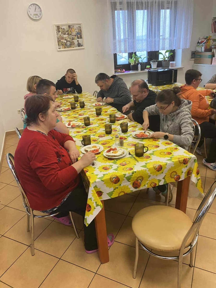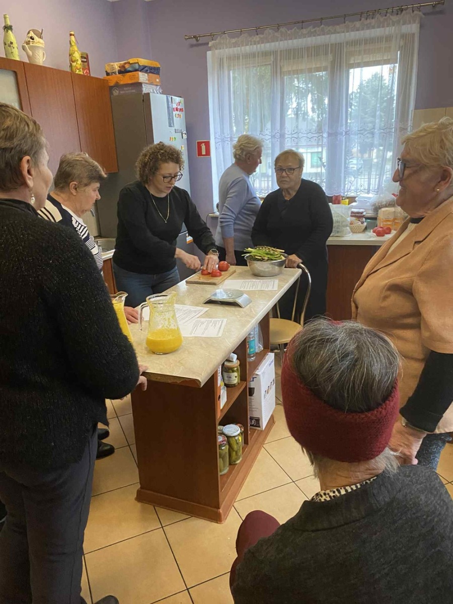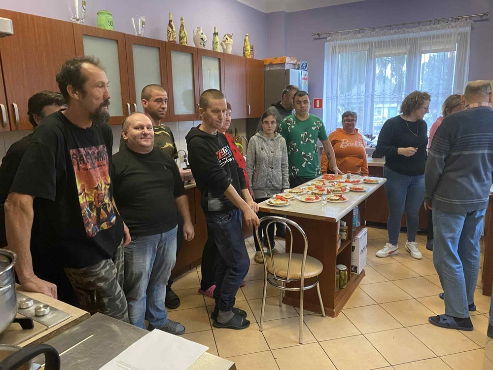 W dniu 17.11.2025 roku odbyły się kolejne już z cyklu edukacyjne warsztaty żywieniowe połączone z zajęciami kulinarnymi prowadzonymi przez Edukatora Zdrowia. Celem prowadzonych warsztatów jest podniesienie świadomości żywieniowej uczestników projektu, kształtowanie zdrowych nawyków oraz praktyczne zaprezentowanie sposobów przygotowania pełnowartościowych i łatwych posiłków. Podczas zajęć uczestnicy pod okiem Edukatora Zdrowia przygotowywali w grupach zdrowe potrawy takie jak: Gofry z cukinii