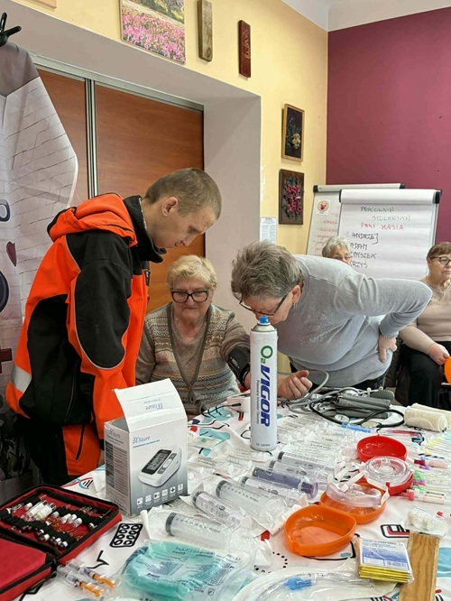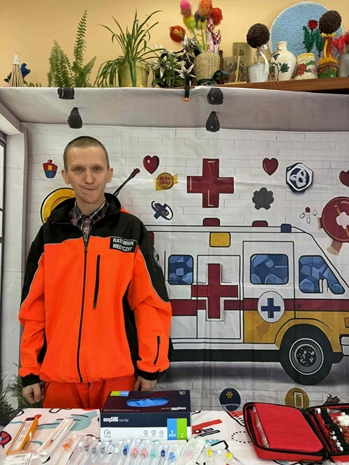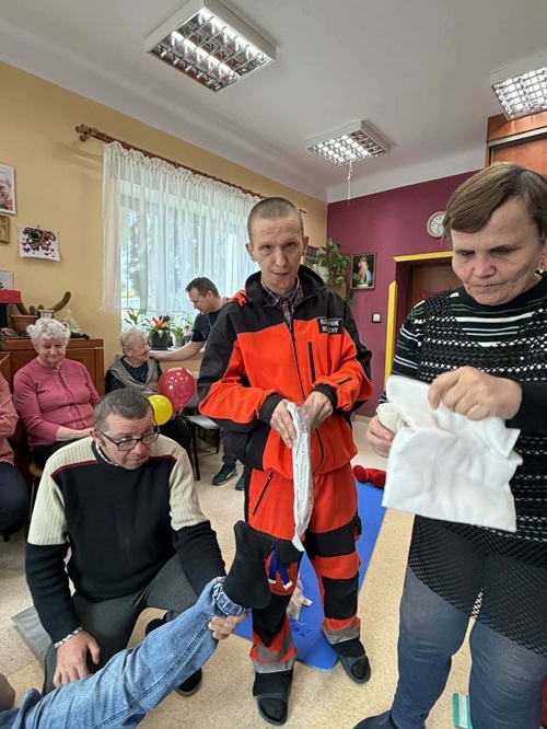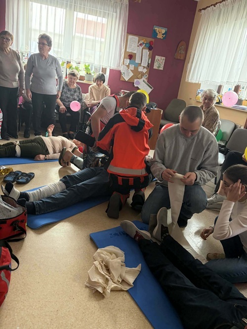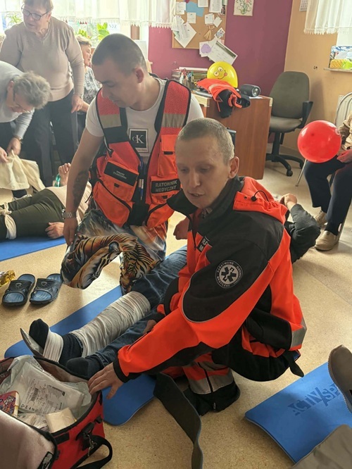 W dniu 20.03.2026 roku po raz kolejny odbyły się zajęcia z zakresu  pierwszej pomocy  z Ratownikiem Medycznym. Celem  szkolenia było podniesienie wiedzy i umiejętności uczestników w zakresie reagowania w sytuacjach zagrożenia zdrowia i życia. Podczas zajęć omówiono podstawowe zasady postepowania w przypadku osoby nieprzytomnej. Uczestnicy ćwiczyli  schemat resuscytacji krążeniowo-oddechowej (RKO), zaopatrywanie krwawień  i krwotoków, omówiono sposoby postępowania w przypadku krwawień, W przypadku masywnych krwotoków zwrócono uwagę na konieczność szybkiego działania oraz możliwość użycia opaski uciskowej jako ostateczności. Uczestnicy poznali także zasady unieruchamiania złamań. Przećwiczono wykorzystanie chusty trójkątnej, deski i szyny kramera.